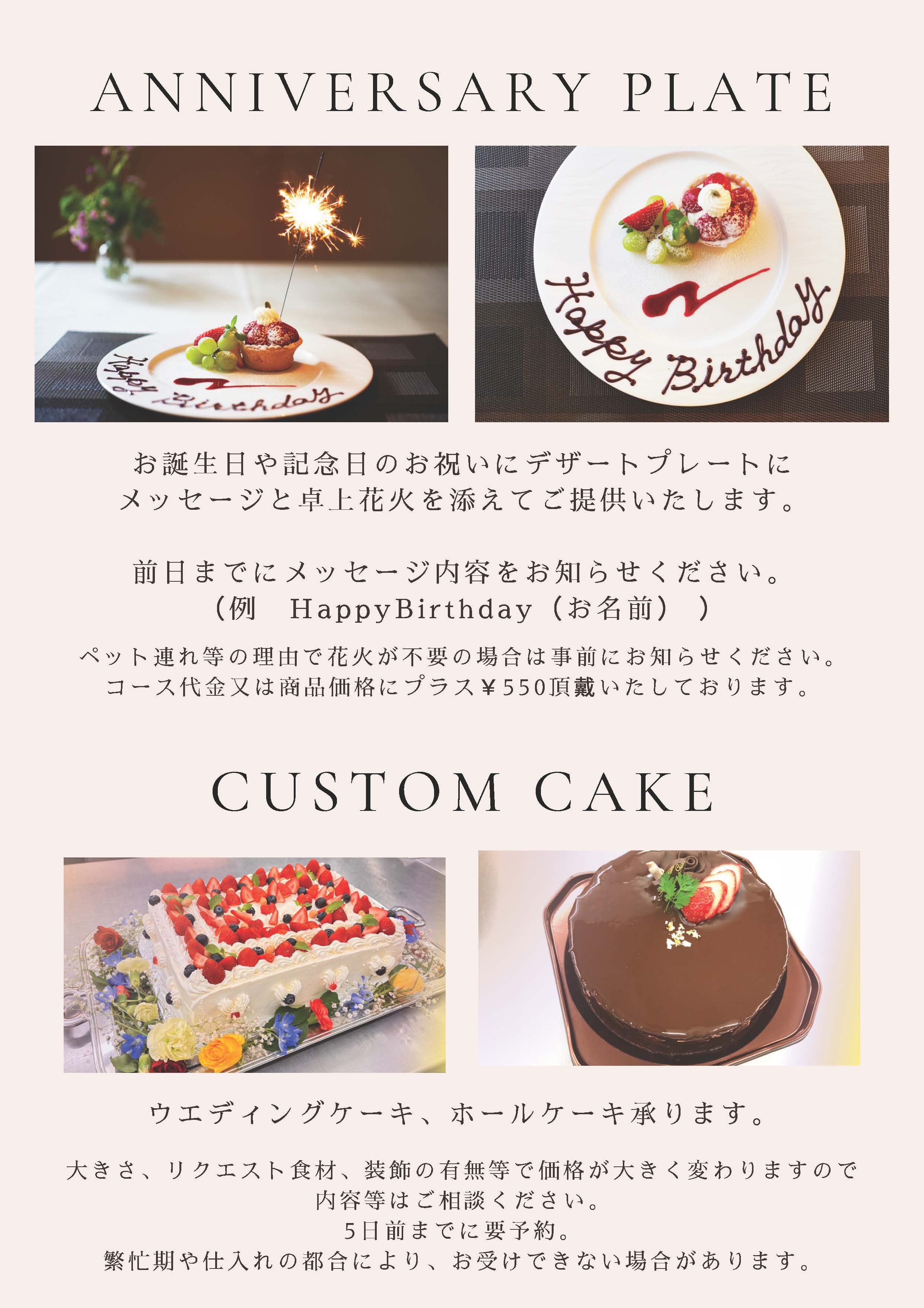 記念日プレート&ケーキオーダー