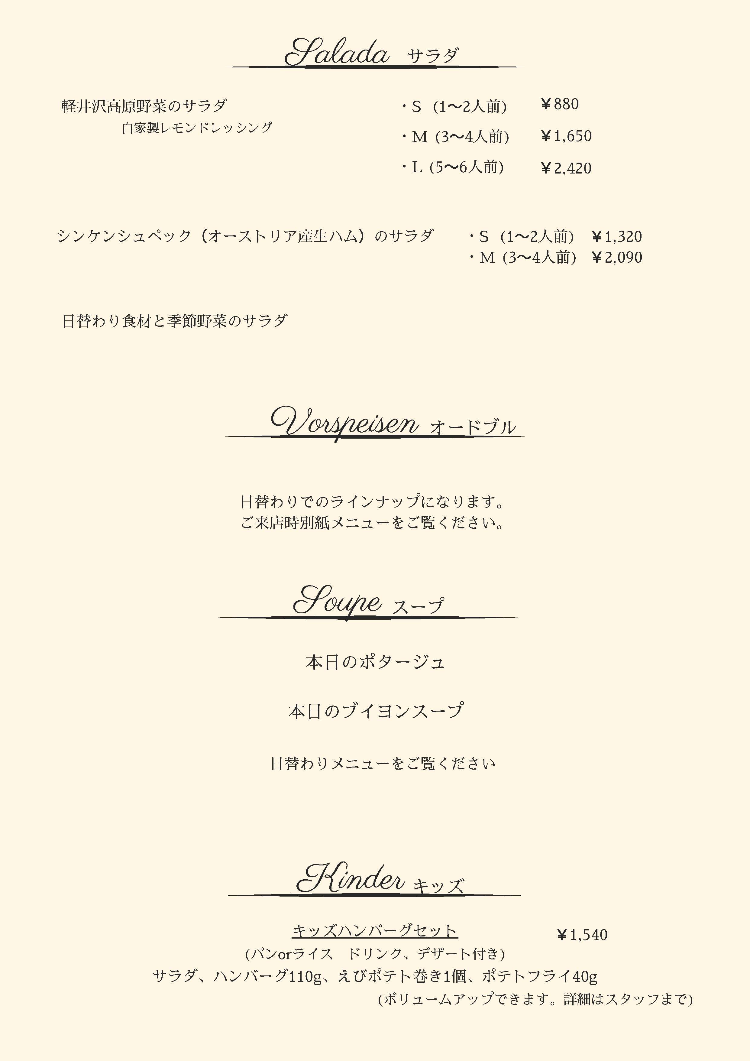 アラカルトメニュー